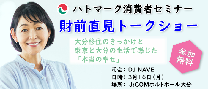 ハトマーク消費者セミナー 財前直見スペシャルトークショー公益社団法人大分県宅地建物取引業協会ハトマーク消費者セミナー 財前直見スペシャルトークショー大分移住…