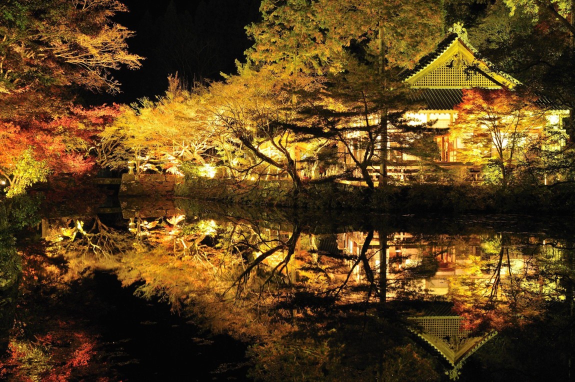 豊後大野市清川町の宝生寺では、11月8日土曜日から15日土曜日まで紅葉のライトアップが行われます。日没後17時30分から21時まで、色づく木々と幻想的な光が境内を包みます。宝生寺は800年以上の歴史を持つ由緒ある古寺で、紅葉と寺院の景観が夜の散策を特別なものにします。