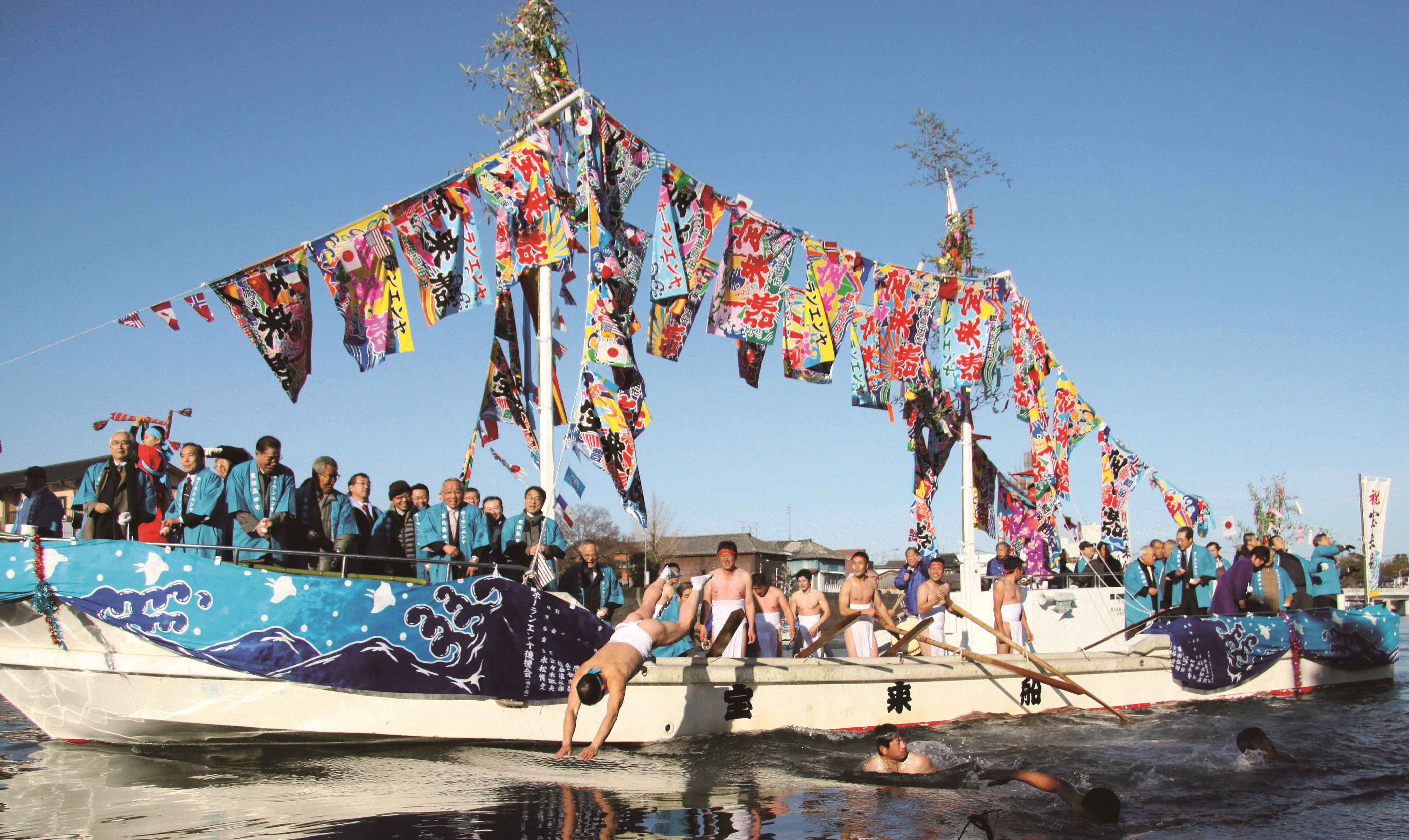 宝来船からは、紅白の祝い餅がまかれますので、ぜひ新春の福をつかんでください。