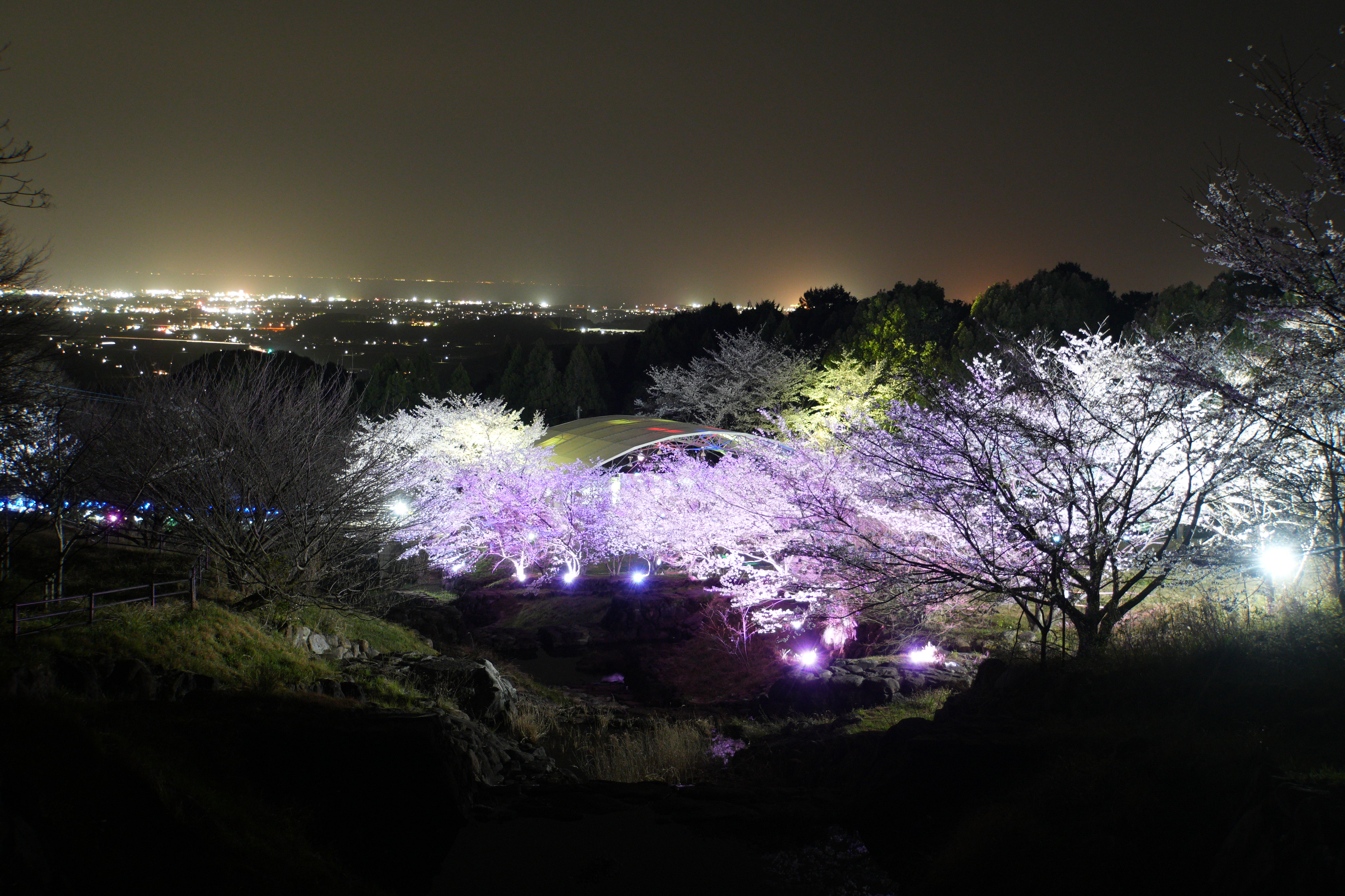 3月27日金曜日から4月5日日曜日まで、八面山野外音楽堂周辺で、桜のライトアップとイルミネーションを点灯する「夜桜お八」を開催します。